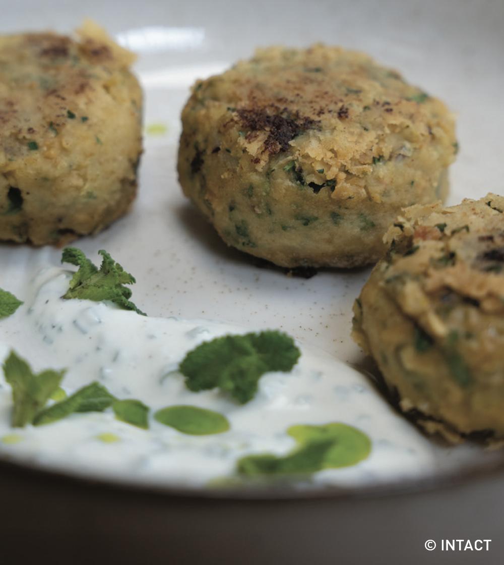 3. Dresser les falafels harmonieusement et la sauce fromage blanc sur le côté.