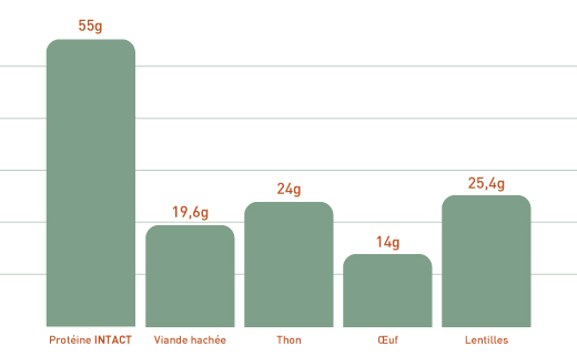 | Poids de la portion | Poids recommandé de la denrée protidique (viande) | Poids de protéines INTACT Foodservice | |
